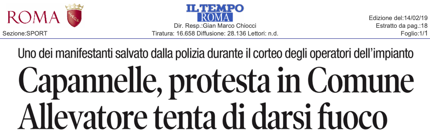 Capannelle e l’ippodromo continuano ed essere una gigantesca spina nel fianco per l’Amministrazione capitolina: ieri mattina, mentre era in corso l’ennesima manifestazione sotto il Campidoglio di allevatori e operatori del più grande impianto sportivo comunale, uno dei manifestanti, un anziano allenatore, si è cosparso di benzina minacciando di darsi fuoco.